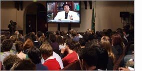 Thank you for this invitation to talk to you. A few months ago I received a similar invitation from Oxford University. I spoke to its students via satellite link. Today, it is my honor and pleasure to speak to you using the same method.