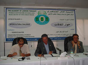 In line with cultural activities of the World Centre for the Studies and Researches on the Green Book, known as; "Lecture of the month", the Centre invited UNESCO's former Director General, Federico Mayor, to present this month's (August) lecture. Indeed, Dr. Federico Mayor was at the Centre and presented his lecture entitled: "Intercultural dialogue".